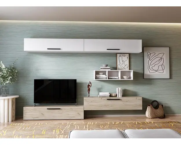 Living Pati 104 - Mobila Sufragerie Stejar + Alb Living Pati 104 - Mobila Sufragerie Stejar + Alb face parte dintr-o categorie de mobilier modern, contemporan ce imbina designul cu utilitatea. Familia de living Pati are 4 decoruri: stejar, alb, gri si beton . Am realizat peste 100 de configuratii din care puteti alege cu dimensiuni si stiluri diferite. Dulapul de haine este optional si puteti alege unul sau mai multe bucati. Livrare gratuita si rapida, 4-10 zile lucratoare prin flota proprie Suntem producatori de mobilier, fara intermediari Toate piesele de mobilier au o garantie de 2 ani Corpurile sunt construite din PAL melaminat de 16mm. Cantul aplicat este de 0,6 ce le permite muchiilor sa fie placute la atingere . Video de prezentare familie Videoul de prezentare poate contine mai multe corpuri de mobilier sau mai putine in comparatie cu produsul de pe aceasta pagina. Scopul acestui video este de a detalia aspectul materialelor, accesoriilor cat si a familiei din care face parte. Dimensiuni Living Pati 104 - Mobila Sufragerie Stejar + Alb Imaginea alaturata prezinta compartimentarea pentru mobila de sufragerie Pati. Aceasta configuratie contine urmatoarele corpuri: 4 x Corp 1380: L 138 x H 29 x A 26.7 cm 1 x Corp decorativ: L 91.5 x H 23.2 x A 25 cm Optional dulap: L 79.8 x H 185 x A 35 cm Dimensiuni totale living Pati Fara dulap: L 276 x A 26.7 x H 185 cm Cu un dulap: L 355.8 x A 35 x H 185 cm Spatiul de TV: diagonala maxima 139 cm.Toate corpurile se pot pune pe stanga sau pe dreapta in functie de cum doriti. Nu este obligatoriu pozitionarea ca in prezentare. Ele nu sunt prinse unul de celalalt, sunt independente. SCHITA MONTAJ corp 1380 comoda / inferior SCHITA MONTAJ CORP 1380 SUPERIOR SCHITA MONTAJ CORP DECORATIV SCHITA MONTAJ dulap 2U Pati Pretul afisat nu include alte accesorii sau obiecte de decor (TV, tablouri, elemente de iluminat, covor etc.) Dimensiunile sunt exprimate in cm si pot oscila intre ± 10 mm. Produsul se livreaza demontat si este insotit de accesorii si instructiuni de asamblare. Produsul cu denumirea Living Pati 104 - Mobila Sufragerie Stejar + Alb face parte din brandul Mobila laguna, se afla in categoria Mobila living si sufragerii si subcategoria