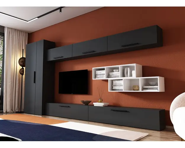 Living Pati 124 - Mobila Sufragerie Gri Antracit + Alb