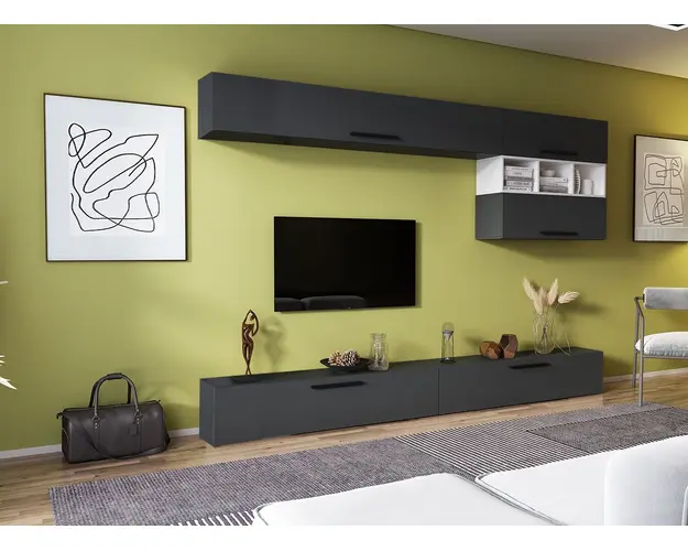 Living Pati 134 - Mobila Sufragerie Gri Antracit + Alb