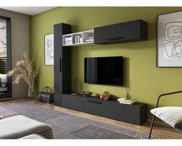Living Pati 136 - Mobila Sufragerie Gri Antracit + Alb