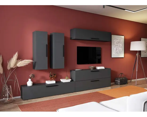 Living Pati 146 - Mobila Sufragerie Gri Antracit Living Pati 146 - Mobila Sufragerie Gri Antracit face parte dintr-o categorie de mobilier modern, contemporan ce imbina designul cu utilitatea. Familia de living Pati are 4 decoruri: stejar, alb, gri si beton . Am realizat peste 100 de configuratii din care puteti alege cu dimensiuni si stiluri diferite. Dulapul de haine este optional si puteti alege unul sau mai multe bucati. Livrare gratuita si rapida, 4-10 zile lucratoare prin flota proprie Suntem producatori de mobilier, fara intermediari Toate piesele de mobilier au o garantie de 2 ani Corpurile sunt construite din PAL melaminat de 16mm. Cantul aplicat este de 0,6 ce le permite muchiilor sa fie placute la atingere . Video de prezentare familie Videoul de prezentare poate contine mai multe corpuri de mobilier sau mai putine in comparatie cu produsul de pe aceasta pagina. Scopul acestui video este de a detalia aspectul materialelor, accesoriilor cat si a familiei din care face parte. Dimensiuni Living Pati 146 - Mobila Sufragerie Gri Antracit Imaginea alaturata prezinta compartimentarea pentru mobila de sufragerie Pati. Aceasta configuratie contine urmatoarele corpuri: 4 x Corp 1380: L 138 x H 29 x A 26.7 cm 2 x Corp 920: L 92 x H 29 x A 26.7 cm Optional dulap: L 79.8 x H 185 x A 35 cm Dimensiuni totale living Pati Fara dulap: L 276 x A 26.7 x H 180 cm Cu un dulap: L 355.8 x A 35 x H 185 cm Spatiul de TV: diagonala maxima 139 cm.Toate corpurile se pot pune pe stanga sau pe dreapta in functie de cum doriti. Nu este obligatoriu pozitionarea ca in prezentare. Ele nu sunt prinse unul de celalalt, sunt independente. SCHITA MONTAJ corp 1380 comoda / inferior SCHITA MONTAJ CORP 1380 SUPERIOR SCHITA MONTAJ CORP 920 vertical SCHITA MONTAJ dulap 2U Pati Pretul afisat nu include alte accesorii sau obiecte de decor (TV, tablouri, elemente de iluminat, covor etc.) Dimensiunile sunt exprimate in cm si pot oscila intre ± 10 mm. Produsul se livreaza demontat si este insotit de accesorii si instructiuni de asamblare. Produsul cu denumirea Living Pati 146 - Mobila Sufragerie Gri Antracit face parte din brandul Mobila laguna, se afla in categoria Mobila living si sufragerii si subcategoria