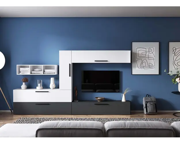 Living Pati 183 - Mobila Sufragerie Gri Antracit + Alb Living Pati 183 - Mobila Sufragerie Gri Antracit + Alb face parte dintr-o categorie de mobilier modern, contemporan ce imbina designul cu utilitatea. Familia de living Pati are 4 decoruri: stejar, alb, gri si beton . Am realizat peste 100 de configuratii din care puteti alege cu dimensiuni si stiluri diferite. Dulapul de haine este optional si puteti alege unul sau mai multe bucati. Livrare gratuita si rapida, 4-10 zile lucratoare prin flota proprie Suntem producatori de mobilier, fara intermediari Toate piesele de mobilier au o garantie de 2 ani Corpurile sunt construite din PAL melaminat de 16mm. Cantul aplicat este de 0,6 ce le permite muchiilor sa fie placute la atingere . Video de prezentare familie Videoul de prezentare poate contine mai multe corpuri de mobilier sau mai putine in comparatie cu produsul de pe aceasta pagina. Scopul acestui video este de a detalia aspectul materialelor, accesoriilor cat si a familiei din care face parte. Dimensiuni Living Pati 183 - Mobila Sufragerie Gri Antracit + Alb Imaginea alaturata prezinta compartimentarea pentru mobila de sufragerie Pati. Aceasta configuratie contine urmatoarele corpuri: 4 x Corp 1380: L 138 x H 29 x A 26.7 cm 1 x Corp 920: L 92 x H 29 x A 26.7 cm 1 x Corp decorativ: L 91.5 x H 23.2 x A 25 cm Optional dulap: L 79.8 x H 185 x A 35 cm Dimensiuni totale living Pati Fara dulap: L 276 x A 26.7 x H 160 cm Cu un dulap: L 355.8 x A 35 x H 185 cm Spatiul de TV: diagonala maxima 139 cm.Toate corpurile se pot pune pe stanga sau pe dreapta in functie de cum doriti. Nu este obligatoriu pozitionarea ca in prezentare. Ele nu sunt prinse unul de celalalt, sunt independente. SCHITA MONTAJ corp 1380 comoda / inferior SCHITA MONTAJ CORP 1380 SUPERIOR SCHITA MONTAJ CORP 920 vertical SCHITA MONTAJ CORP DECORATIV SCHITA MONTAJ dulap 2U Pati Pretul afisat nu include alte accesorii sau obiecte de decor (TV, tablouri, elemente de iluminat, covor etc.) Dimensiunile sunt exprimate in cm si pot oscila intre ± 10 mm. Produsul se livreaza demontat si este insotit de accesorii si instructiuni de asamblare. Produsul cu denumirea Living Pati 183 - Mobila Sufragerie Gri Antracit + Alb face parte din brandul Mobila laguna, se afla in categoria Mobila living si sufragerii si subcategoria