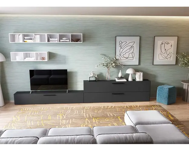 Living Pati 194 - Mobila Sufragerie Gri Antracit + Alb Living Pati 194 - Mobila Sufragerie Gri Antracit + Alb face parte dintr-o categorie de mobilier modern, contemporan ce imbina designul cu utilitatea. Familia de living Pati are 4 decoruri: stejar, alb, gri si beton . Am realizat peste 100 de configuratii din care puteti alege cu dimensiuni si stiluri diferite. Dulapul de haine este optional si puteti alege unul sau mai multe bucati. Livrare gratuita si rapida, 4-10 zile lucratoare prin flota proprie Suntem producatori de mobilier, fara intermediari Toate piesele de mobilier au o garantie de 2 ani Corpurile sunt construite din PAL melaminat de 16mm. Cantul aplicat este de 0,6 ce le permite muchiilor sa fie placute la atingere . Video de prezentare familie Videoul de prezentare poate contine mai multe corpuri de mobilier sau mai putine in comparatie cu produsul de pe aceasta pagina. Scopul acestui video este de a detalia aspectul materialelor, accesoriilor cat si a familiei din care face parte. Dimensiuni Living Pati 194 - Mobila Sufragerie Gri Antracit + Alb Imaginea alaturata prezinta compartimentarea pentru mobila de sufragerie Pati. Aceasta configuratie contine urmatoarele corpuri: 3 x Corp decorativ: L 91.5 x H 23.2 x A 25 cm 3 x Corp 1850: L 185 x H 29 x A 26.7 cm Optional dulap: L 79.8 x H 185 x A 35 cm Dimensiuni totale living Pati Fara dulap: L 370 x A 26.7 x H 185 cm Cu un dulap: L 449.8 x A 35 xH 185cm Spatiul de TV: diagonala maxima 139 cm.Toate corpurile se pot pune pe stanga sau pe dreapta in functie de cum doriti. Nu este obligatoriu pozitionarea ca in prezentare. Ele nu sunt prinse unul de celalalt, sunt independente. SCHITA MONTAJ CORP 1850 INFERIOR SCHITA MONTAJ CORP DECORATIV SCHITA MONTAJ dulap 2U Pati Pretul afisat nu include alte accesorii sau obiecte de decor (TV, tablouri, elemente de iluminat, covor etc.) Dimensiunile sunt exprimate in cm si pot oscila intre ± 10 mm. Produsul se livreaza demontat si este insotit de accesorii si instructiuni de asamblare. Produsul cu denumirea Living Pati 194 - Mobila Sufragerie Gri Antracit + Alb face parte din brandul Mobila laguna, se afla in categoria Mobila living si sufragerii si subcategoria