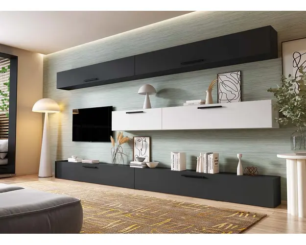 Living Pati 197 - Mobila Sufragerie Gri Antracit + Alb