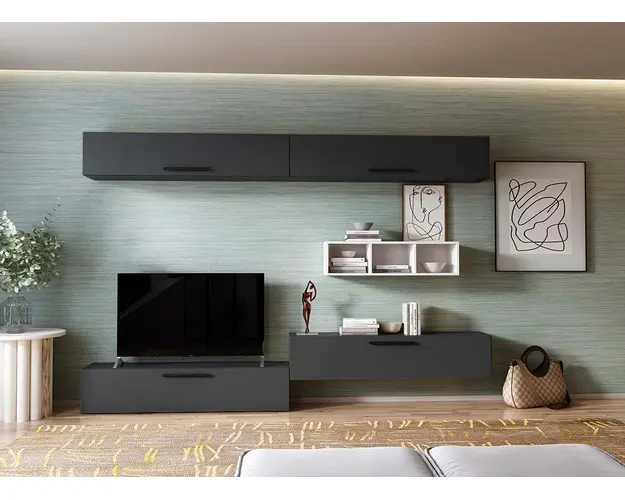 Living Pati 200 - Mobila Sufragerie Gri Antracit + Alb