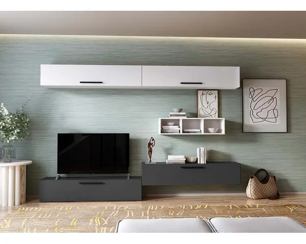Living Pati 201 - Mobila Sufragerie Gri Antracit + Alb