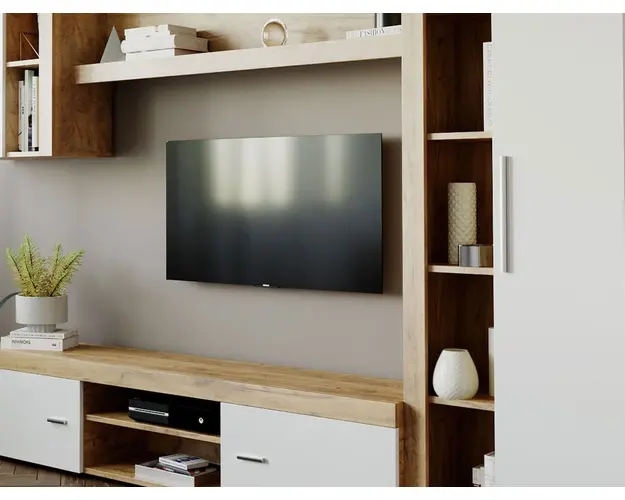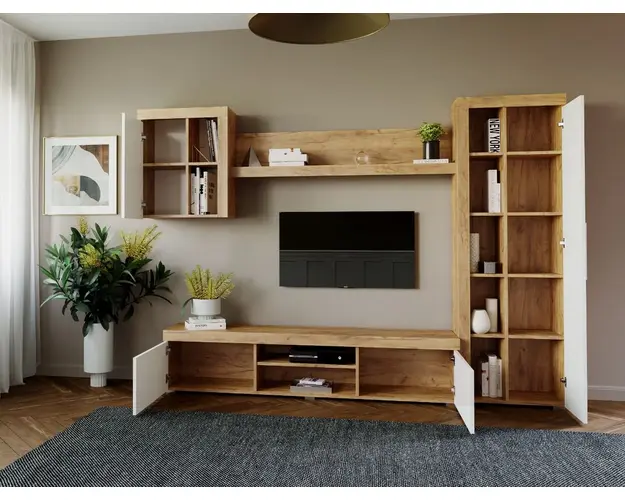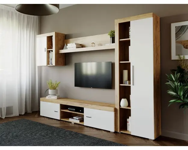 Living Milan Modul A Comoda Lunga Living Milan - Modul F / G Polita Living Milan Modul C Soldat 1 usa Living Milan Modul E Corp Suspendat Mobila sufragerie - Living Milan C1 Stejar Mobila sufragerie - Living Milan C1 Stejar face parte din familia de mobila pentru living Milan. Aceasta familie are un aspect modern si este compusa din mai multe module. Fara surprize la livrare, diferente de culoare sau calitate Livrare gratuita si rapida, 4-10 zile lucratoare prin flota proprie Suntem producatori de mobilier, fara intermediari Toate piesele de mobilier au o garantie de 2 ani Puteti alege direct din configuratiile realizate de noi sau daca doriti puteti creea singuri propria configuratie de living combinand din cele 8 corpuri de mobila. In functie de spatiul unde doriti sa amplasati mobila puteti adapta livingul pentru o potrivire perfecta. Corpurile sunt construite din PAL Kronospan melaminat de 16mmcu finisaj Stejar Auriu si Alb Mat, o textura similara lemnului, care creeaza un contrast rafinat si un ambient placut. Cantul aplicat este unul de 0,6 care le permite muchiilor sa fie placute la atingere fiind finisate si atent retusate. Dimensiuni Mobila sufragerie - Living Milan C1 Stejar Imaginea alaturata prezinta compartimentarea interioara si exterioara pentru mobila de sufragerie Milan. Aceasta configuratie are 4 corpuri modulare , 2 suspendate si doua pe sol. Spatii de depozitare cu usa cat si etajere si polita. Dimensiuni corpuri: Comoda TV: L 180 x A 35.2 x H 39.8cm Soldat 1 usa: L 60 x A 30.4 x H 182cm Corp Suspendat: L 60 x A 30.4 x H 69.8cm Polita 1390 : L 139 x A 21.6 x H 34.8cm Dimensiuni totale livin L 259 x A 35.2 x H 182 cm Spatiul de TV: diagonala max 150cm/59" (sau mai mare) Recomandam un TV cu o diagonala de maxim 150cm/59". Se pot pune si TV-uri cu diagonala mai mare mutand corpul suspendat mai in stanga livingului sau mai sus. Dulapurile si toate corpurile se pot pune pe stanga sau pe dreapta in functie de cum doriti. Nu este obligatoriu pozitionarea ca in prezentare. Ele nu sunt prinse fix unul de celalalt. Info si schite montaj mobila sufragerie Schite de montaj: DESCARCA SCHITA MONTAJ COMODA LUNGA MILAN DESCARCA SCHITA MONTAJ CORP INALT MILAN DESCARCA SCHITA MONTAJ CORP SUSPENDAT MILAN DESCARCA SCHITA MONTAJ POLITA MILAN Pretul afisat nu include alte accesorii sau obiecte de decor (TV, tablouri, elemente de iluminat, covor etc.) Dimensiunile sunt exprimate in cm si pot oscila intre ± 10 mm. Produsul se livreaza demontat si este insotit de accesorii si instructiuni de asamblare. Produsul cu denumirea Mobila sufragerie - Living Milan C1 Stejar face parte din brandul Mobila laguna, se afla in categoria Mobila living si sufragerii si subcategoria