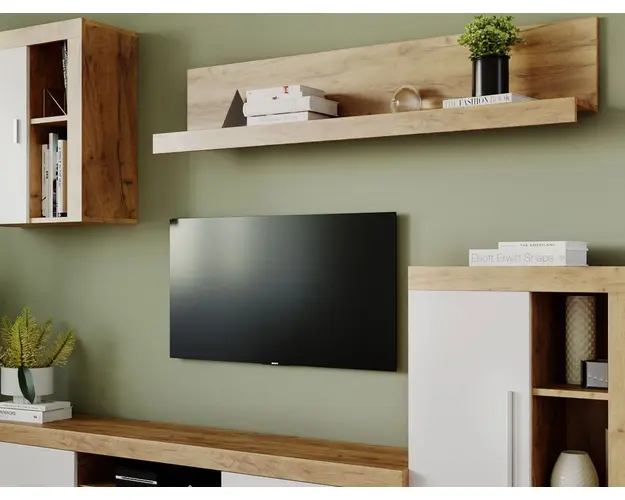 Living Milan Modul A Comoda Lunga Living Milan Modul B Comoda Inalta Living Milan Modul E Corp Suspendat Living Milan - Modul F / G Polita Mobila sufragerie - Living Milan C2 Stejar Mobila sufragerie - Living Milan C2 Stejar face parte din familia de mobila pentru living Milan. Aceasta familie are un aspect modern si este compusa din mai multe module. Fara surprize la livrare, diferente de culoare sau calitate Livrare gratuita si rapida, 4-10 zile lucratoare prin flota proprie Suntem producatori de mobilier, fara intermediari Toate piesele de mobilier au o garantie de 2 ani Puteti alege direct din configuratiile realizate de noi sau daca doriti puteti creea singuri propria configuratie de living combinand din cele 8 corpuri de mobila. In functie de spatiul unde doriti sa amplasati mobila puteti adapta livingul pentru o potrivire perfecta. Corpurile sunt construite din PAL Kronospan melaminat de 16mmcu finisaj Stejar Auriu si Alb Mat, o textura similara lemnului, care creeaza un contrast rafinat si un ambient placut. Cantul aplicat este unul de 0,6 care le permite muchiilor sa fie placute la atingere fiind finisate si atent retusate. Dimensiuni Mobila sufragerie - Living Milan C2 Stejar Imaginea alaturata prezinta compartimentarea interioara si exterioara pentru mobila de sufragerie Milan. Aceasta configuratie are 4 corpuri modulare , 2 suspendate si 2 pe sol. Spatii de depozitare cu usa cat si etajere si polita. Dimensiuni corpuri: Comoda TV: L 180 x A 35.2 x H 39.8cm Comoda Inalta: L 60 x A 30.4 x H 96.8cm Corp Suspendat: L 60 x A 30.4 x H 69.8cm Polita 1390 : L 139 x A 21.6 x H 34.8cm Dimensiuni totale livin L 240 x A 35.2 x H 182cm Spatiul de TV: diagonala max 126cm/50" (sau mai mare) Recomandam un TV cu o diagonala de maxim 126cm/50". Se pot pune si TV-uri cu diagonala mai mare mutand corpul suspendat mai in stanga. Toate corpurile se pot pune pe stanga sau pe dreapta in functie de cum doriti. Nu este obligatoriu pozitionarea ca in prezentare. Ele nu sunt prinse fix unul de celalalt. Info si schite montaj mobila sufragerie Schite de montaj: DESCARCA SCHITA MONTAJ COMODA LUNGA MILAN DESCARCA SCHITA MONTAJ COMODA INALTA MILAN DESCARCA SCHITA MONTAJ CORP SUSPENDAT MILAN DESCARCA SCHITA MONTAJ POLITA MILAN DESCARCA SCHITA MONTAJ DULAP MILAN Pretul afisat nu include alte accesorii sau obiecte de decor (TV, tablouri, elemente de iluminat, covor etc.) Dimensiunile sunt exprimate in cm si pot oscila intre ± 10 mm. Produsul se livreaza demontat si este insotit de accesorii si instructiuni de asamblare. Produsul cu denumirea Mobila sufragerie - Living Milan C2 Stejar face parte din brandul Mobila laguna, se afla in categoria Mobila living si sufragerii si subcategoria