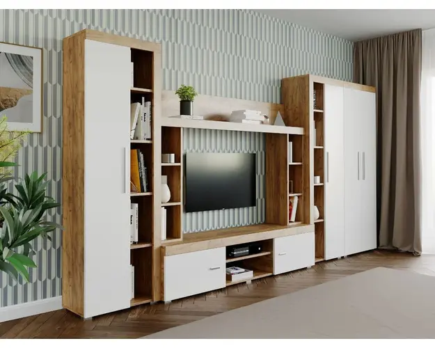 Living Milan Modul A Comoda Lunga Living Milan - Modul F / G Polita Living Milan Modul C Soldat 1 usa Living Milan Modul D Dulap Raft Stejar Living Milan - Modul H Dulap Mobila sufragerie - Living Milan C3 UNO Stejar Mobila sufragerie - Living Milan C3 UNO Stejar face parte din familia de mobila pentru living Milan. Aceasta familie are un aspect modern si este compusa din mai multe module. Fara surprize la livrare, diferente de culoare sau calitate Livrare gratuita si rapida, 4-10 zile lucratoare prin flota proprie Suntem producatori de mobilier, fara intermediari Toate piesele de mobilier au o garantie de 2 ani Puteti alege direct din configuratiile realizate de noi sau daca doriti puteti creea singuri propria configuratie de living combinand din cele 8 corpuri de mobila. In functie de spatiul unde doriti sa amplasati mobila puteti adapta livingul pentru o potrivire perfecta. Corpurile sunt construite din PAL Kronospan melaminat de 16mmcu finisaj Stejar Auriu si Alb Mat, o textura similara lemnului, care creeaza un contrast rafinat si un ambient placut.. Cantul aplicat este unul de 0,6 care le permite muchiilor sa fie placute la atingere fiind finisate si atent retusate. Dimensiuni Mobila sufragerie - Living Milan C3 UNO Stejar Imaginea alaturata prezinta compartimentarea interioara si exterioara pentru mobila de sufragerie Milan. Aceasta configuratie are 7 corpuri modulare , 1 suspendat si 6 pe sol. Spatii de depozitare cu usa cat si etajere si polita. Dulapul are 2 spatii de depozitare si o bara pentru haine. Poate fi folosit si pentru haine cat si pentru obiecte diverse. Dimensiuni corpuri: Comoda TV: L 180 x A 35.2 x H 39.8cm Dulap Raft x 2 buc: L 25 x A 25 x H 90cm Dulap 2 usi: L 67.6 x A 30.4 x H 182cm Soldat 1 usa x 2 buc: L 60 x A 30.4 x H 182cm Polita 1800 : L 180 x A 21.6 x H 34.8cm Dimensiuni totale livin L 367.6 x A 35.2 x H 182cm Spatiul de TV: diagonala max 139cm/55" (sau mai mare) Recomandam un TV cu o diagonala de maxim 139cm/55". Se pot pune si TV-uri cu diagonala mai mare mutand unul sau ambele corpuri cu raft. Dulapurile si toate corpurile se pot pune pe stanga sau pe dreapta in functie de cum doriti. Nu este obligatoriu pozitionarea ca in prezentare. Ele nu sunt prinse fix unul de celalalt. Info si schite montaj mobila sufragerie Schite de montaj: DESCARCA SCHITA MONTAJ COMODA LUNGA MILAN DESCARCA SCHITA MONTAJ COMODA INALTA MILAN DESCARCA SCHITA MONTAJ DULAP RAFT MILAN DESCARCA SCHITA MONTAJ POLITA MILAN DESCARCA SCHITA MONTAJ DULAP MILAN Pretul afisat nu include alte accesorii sau obiecte de decor (TV, tablouri, elemente de iluminat, covor etc.) Dimensiunile sunt exprimate in cm si pot oscila intre ± 10 mm. Produsul se livreaza demontat si este insotit de accesorii si instructiuni de asamblare. Produsul cu denumirea Mobila sufragerie - Living Milan C3 UNO Stejar face parte din brandul Mobila laguna, se afla in categoria Mobila living si sufragerii si subcategoria