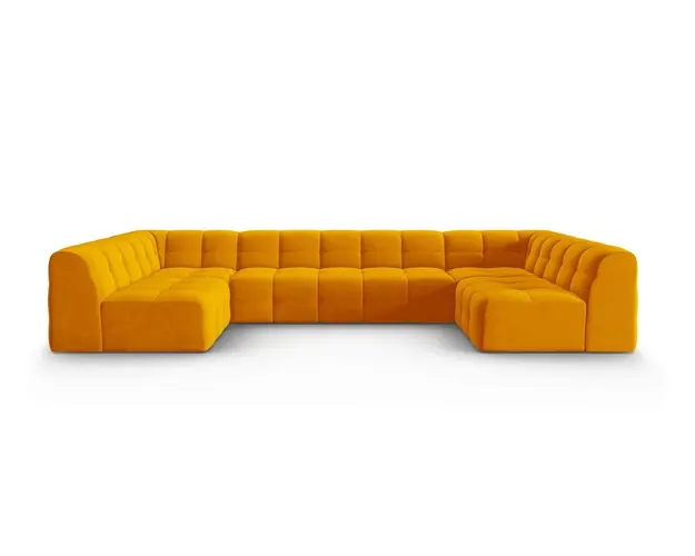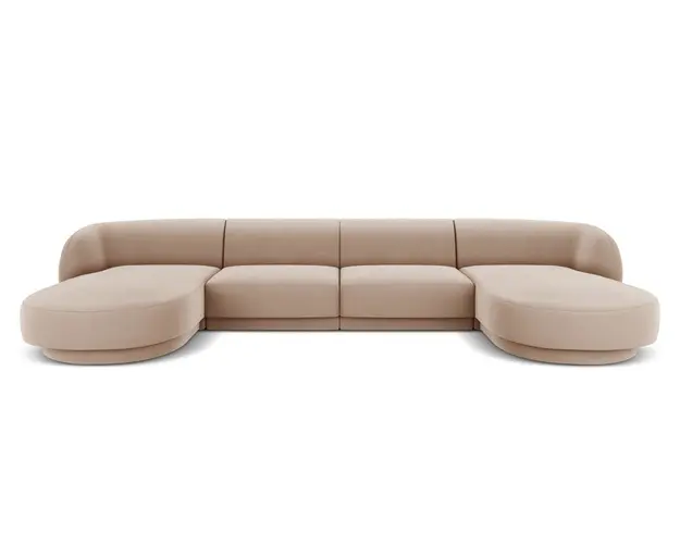 Canapea panoramica 9 locuri, Mamaia, Micadoni Home, GL, 337x256x75 cm, catifea, bej deschis