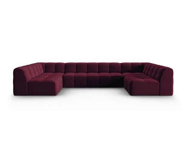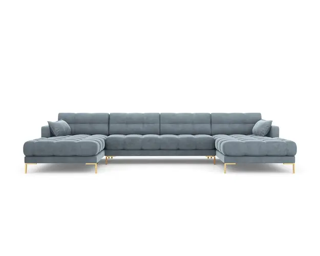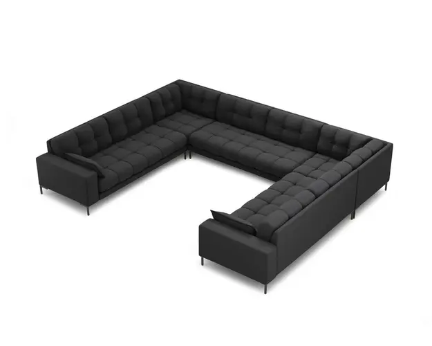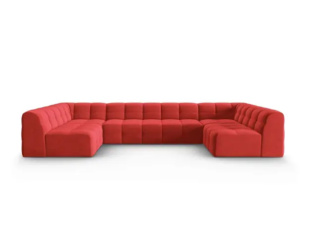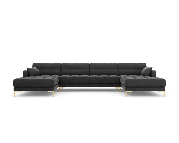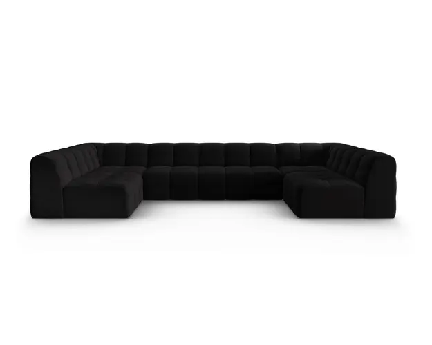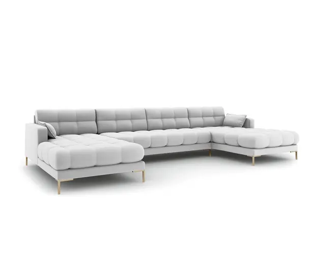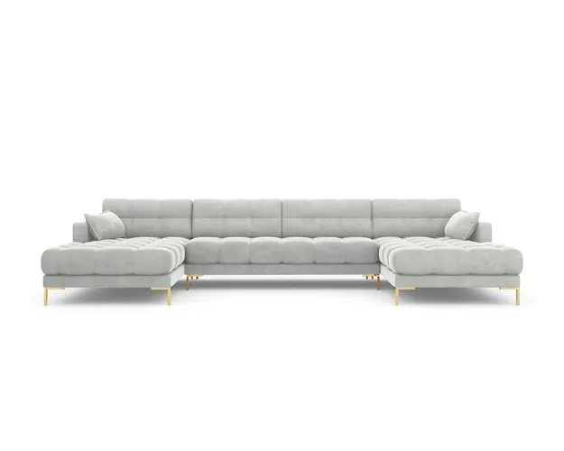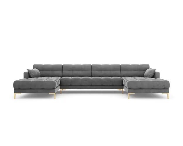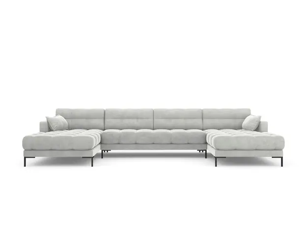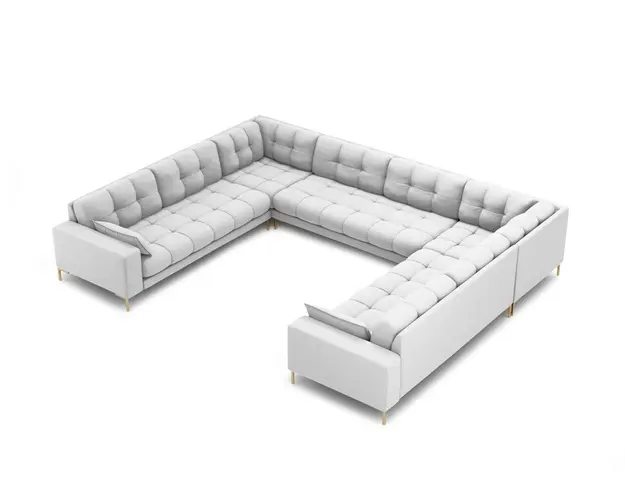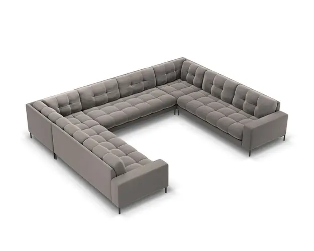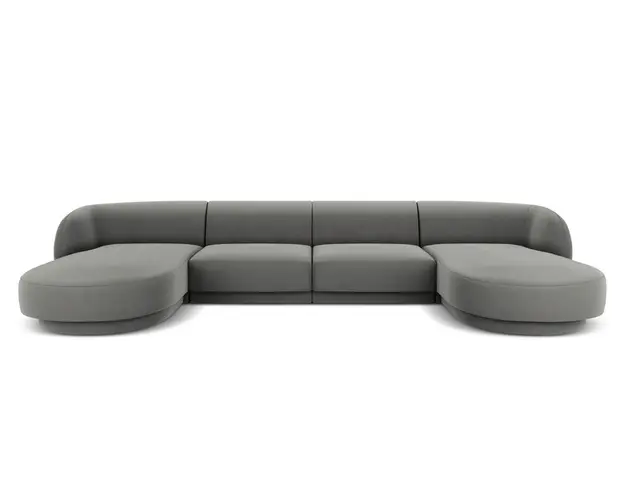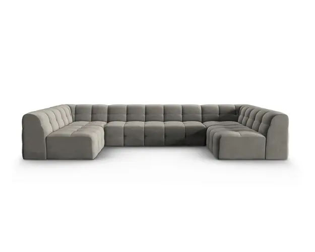 Canapea panoramica 9 locuri, Mamaia, Micadoni Home, BL, 337x256x75 cm, catifea, gri deschis