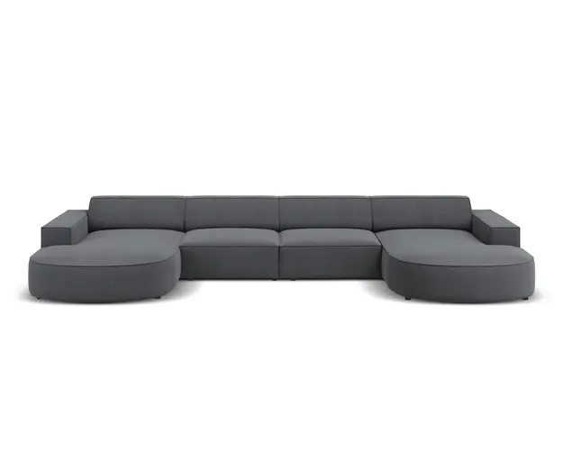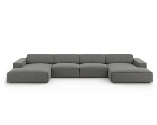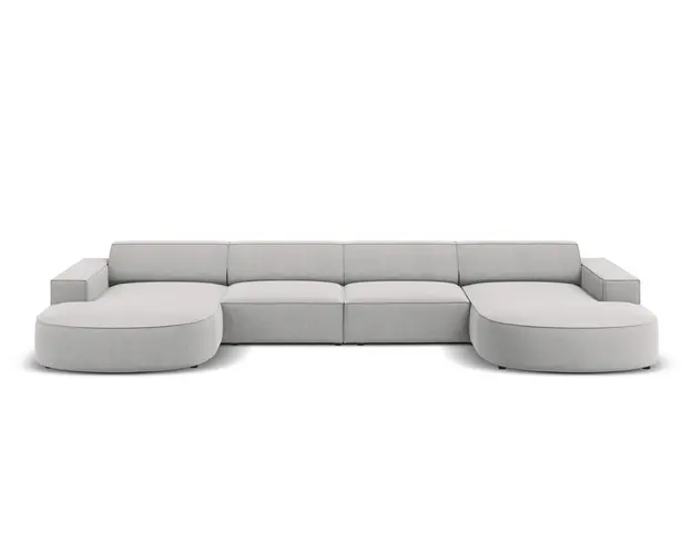 Canapea panoramica 6 locuri, Jodie, Micadoni Home, BL, 364x166x70 cm, poliester, gri deschis