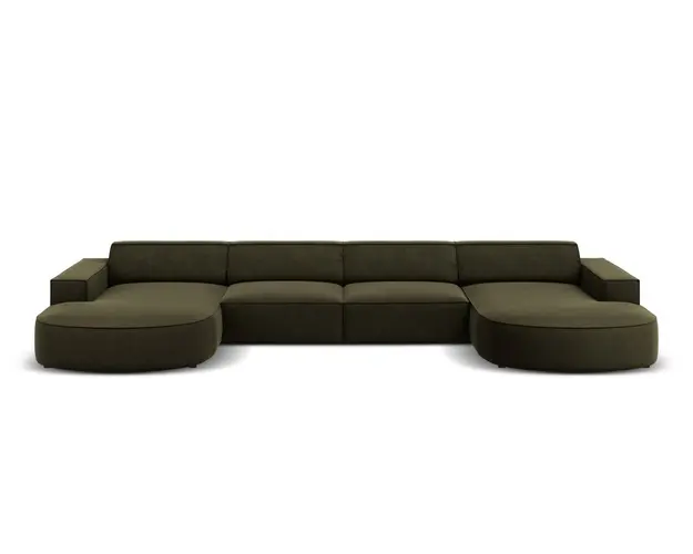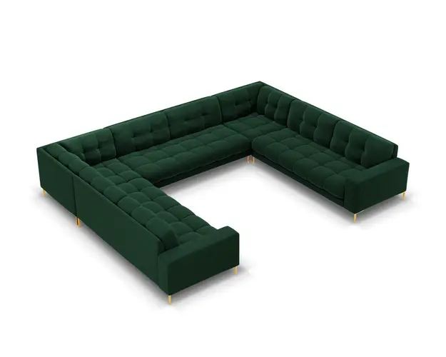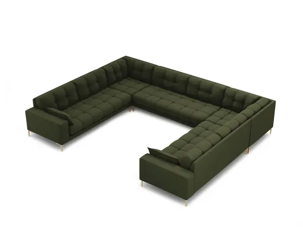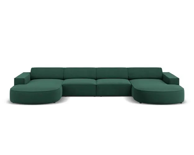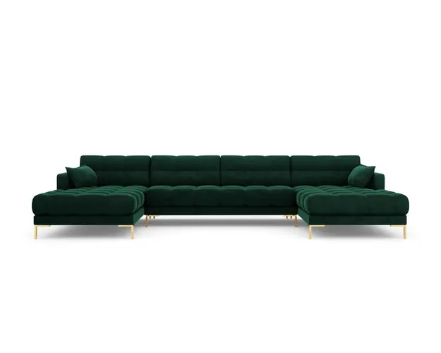 Canapea panoramica 6 locuri, Mamaia, Micadoni Home, BL, 383x185x75 cm, catifea, verde bottle