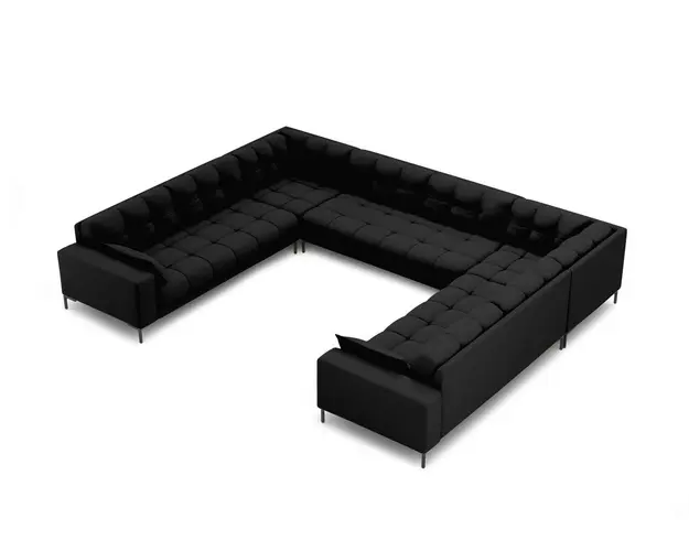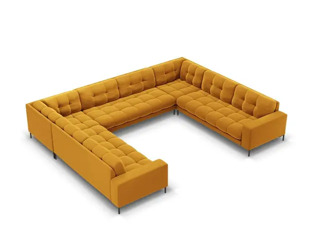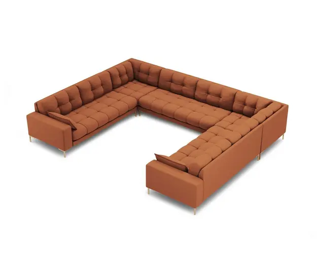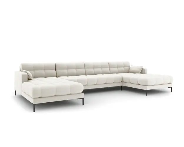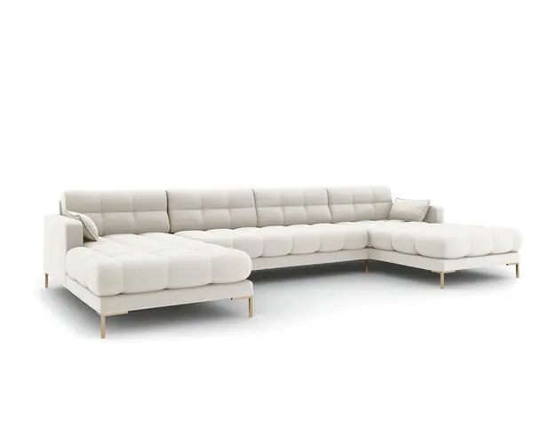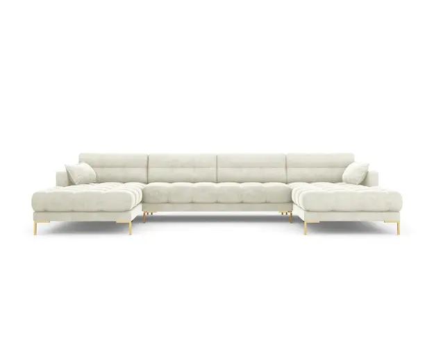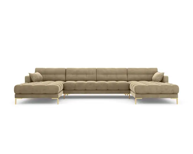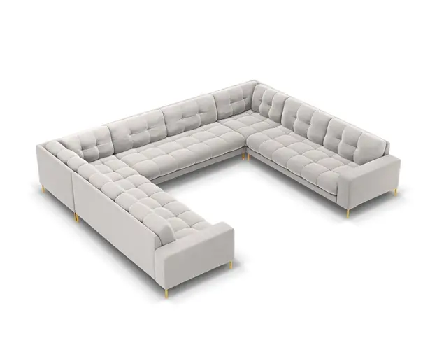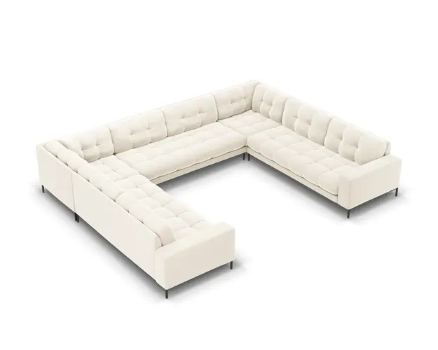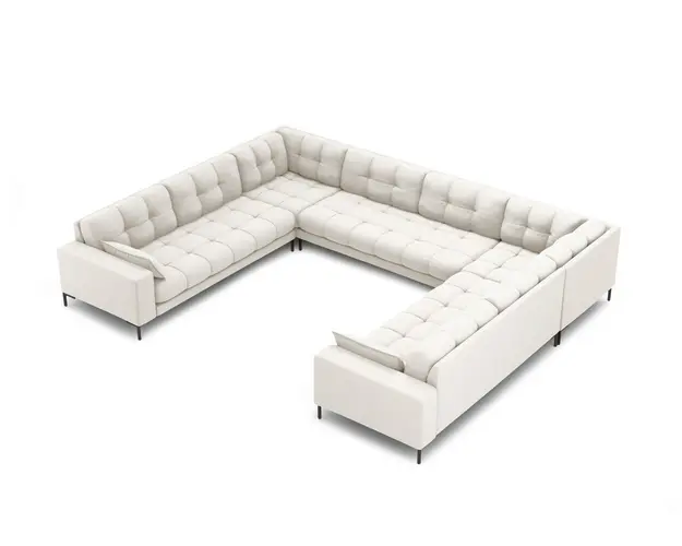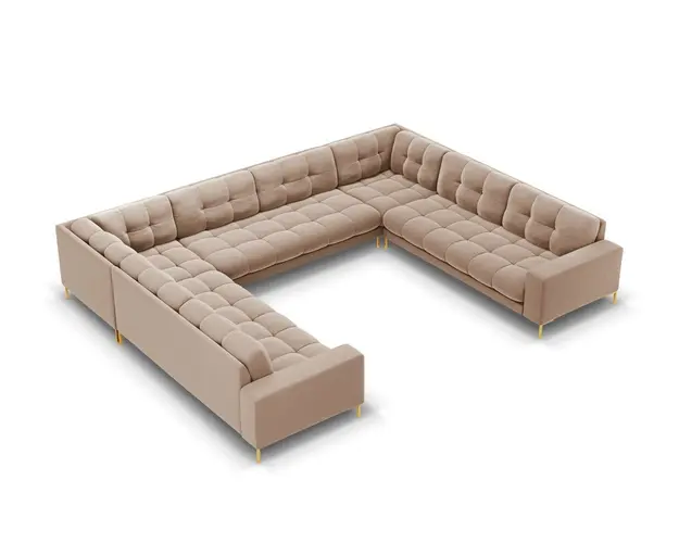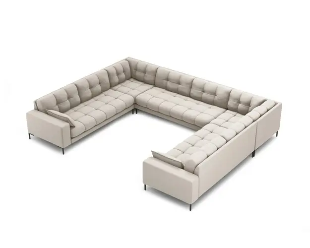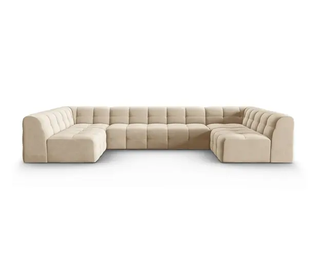 Canapea panoramica 9 locuri, Mamaia, Micadoni Home, BL, 337x256x75 cm, catifea, bej deschis
