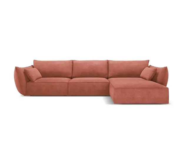 Coltar dreapta 3 locuri, Ruby, Micadoni Home, BL, 186x180x69 cm, tesatura chenille, bej/rosu
