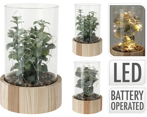 Planta artificiala cu 15 LED-uri, 14 x 14 x 23 cm, V1, sticla/lemn