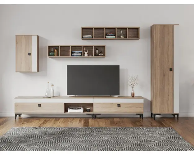 Living Scandinav Rafa 18 Un living in stil scandinav este aerisit, calduros, imbina texturi si materiale diverse si iti da o stare de relaxare, in aceasta categorie de mobilier se incadreza si setul de Living Scandinav Rafa 18. Aceasta colectie are un stil nordic si este alcatuita din mai multe corpuri. Puteti alege direct din configuratiile realizate de noi sau daca doriti puteti creea singuri propria configuratie de living combinand din corpurile de mobila pentru living astfel incat sa se potriveasca perfect in spatiul dorit. Livrare gratuita si rapida, 4-10 zile lucratoare prin flota proprie Suntem producatori de mobilier, fara intermediari Toate piesele de mobilier au o garantie de 2 ani Mobila Sufragerie stil nordic Corpurile sunt construite din PAL melaminat de 16mm cu finisaj alb si sonoma , cel din urma avand o textura similara lemnului, impreuna cu manerele si picioarele negre creeaza un contrast rafinat si un ambient placut. Cantul aplicat este unul de 0,6 ce le permite muchiilor sa fie placute la atingere . Dimensiuni Rafa 18 - Living Scandinav Imaginea alaturata prezinta compartimentarea pentru mobila de sufragerie Rafa. Aceasta configuratie are 6 corpuri modulare , 3 suspendate si 3 nesuspendate. Spatii de depozitare cu usa cat si etajere si polite. Dulapul are bara de haine. Dimensiuni corpuri componente: Comoda TV 1600: L 160 x A 33.5 x H 43.7 cm Comoda TV 1000: L 100 x A 33.5 x H 43.7 cm 2 x Corp decorarativ cu polite: L 120 x A 22 x H 25 cm Corp Superior: L 43.9 x A 26.6 x H 77 cm Dulap de haine: L 51.6 x A 35.1 x H 192.4 cm Inaltime picioare 12cm, este inclusa in dimensiunile corpurilor si dimensiunea totala. Dimensiuni totale livin L 320 x A 35.1 x H 192.4 cm (inaltimea poate varia in functie de inaltimea pentru care optati atunci cand suspendati corpurile superioare) Spatiul de TV: diagonala recomandata maxima 180cm/70" Toate corpurile se pot pune pe stanga sau pe dreapta in functie de cum doriti. Nu este obligatoriu pozitionarea ca in prezentare. Ele nu sunt prinse unul de celalalt. Info si schite montaj mobila sufragerie Schite de montaj: DESCARCA SCHITA COMODA TV 1000 DESCARCA SCHITA COMODA TV 1600 DESCARCA SCHITA CORP SUPERIOR DESCARCA SCHITA CORP DECORARATIV CU POLITE DESCARCA SCHITA DULAP HAINE Pretul afisat nu include alte accesorii sau obiecte de decor (TV, tablouri, elemente de iluminat, covor etc.) Dimensiunile sunt exprimate in cm si pot oscila intre ± 10 mm. Produsul se livreaza demontat si este insotit de accesorii si instructiuni de asamblare. Produsul cu denumirea Rafa 18 - Living Scandinav face parte din brandul Mobila laguna, se afla in categoria Mobila living si sufragerii si subcategoria