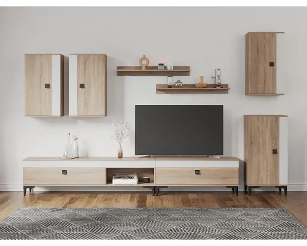 Living Scandinav Rafa 23 Un living in stil scandinav este aerisit, calduros, imbina texturi si materiale diverse si iti da o stare de relaxare, in aceasta categorie de mobilier se incadreza si setul de Living Scandinav Rafa 23. Aceasta colectie are un stil nordic si este alcatuita din mai multe corpuri. Puteti alege direct din configuratiile realizate de noi sau daca doriti puteti creea singuri propria configuratie de living combinand din corpurile de mobila pentru living astfel incat sa se potriveasca perfect in spatiul dorit. Livrare gratuita si rapida, 4-10 zile lucratoare prin flota proprie Suntem producatori de mobilier, fara intermediari Toate piesele de mobilier au o garantie de 2 ani Mobila Sufragerie stil nordic Corpurile sunt construite din PAL melaminat de 16mm cu finisaj alb si sonoma , cel din urma avand o textura similara lemnului, impreuna cu manerele si picioarele negre creeaza un contrast rafinat si un ambient placut. Cantul aplicat este unul de 0,6 ce le permite muchiilor sa fie placute la atingere . Dimensiuni Rafa 23 - Living Scandinav Imaginea alaturata prezinta compartimentarea pentru mobila de sufragerie Rafa. Aceasta configuratie are 8 corpuri modulare , 5 suspendate si 3 pe sol. Spatii de depozitare cu usa cat si etajere si polite. Dimensiuni corpuri componente: Comoda TV 1000: L 100 x A 33.5 x H 43.7 cm Comoda TV 1600: L 160 x A 33.5 x H 43.7 cm 3 x Corp Superior: L 43.9 x A 26.6 x H 77 cm Corp Inferior: L 48 x A 33.6 x H 96.8 cm Set 2 Polite Suspendate: L 91.8 x A 18.6 x H 12 cm Inaltime picioare 12cm, este inclusa in dimensiunile corpurilor si dimensiunea totala. Dimensiuni totale livin L 320 x A 33.6 x H 192 cm (inaltimea poate varia in functie de inaltimea pentru care optati atunci cand suspendati corpurile superioare) Spatiul de TV: diagonala recomandata maxima 180cm/70" Toate corpurile se pot pune pe stanga sau pe dreapta in functie de cum doriti. Nu este obligatoriu pozitionarea ca in prezentare. Ele nu sunt prinse unul de celalalt. Info si schite montaj mobila sufragerie Schite de montaj: DESCARCA SCHITA COMODA TV 1600 DESCARCA SCHITA COMODA TV 1000 DESCARCA SCHITA CORP SUPERIOR DESCARCA SCHITA CORP INFERIOR DESCARCA SCHITA POLITA Pretul afisat nu include alte accesorii sau obiecte de decor (TV, tablouri, elemente de iluminat, covor etc.) Dimensiunile sunt exprimate in cm si pot oscila intre ± 10 mm. Produsul se livreaza demontat si este insotit de accesorii si instructiuni de asamblare. Produsul cu denumirea Rafa 23 - Living Scandinav face parte din brandul Mobila laguna, se afla in categoria Mobila living si sufragerii si subcategoria