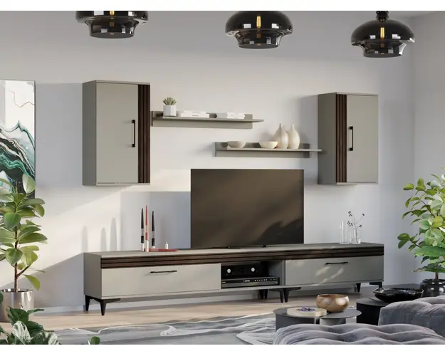 Set 2 Polite Suspendate Nori Ideala pentru living, sufragerie sau chiar dormitor sau hol, mobila Set 2 Polite Suspendate Nori este folosit pentru obiecte decorative, plante sau rame foto. Pot fi folosite doar cele 2 polite sau combinate si cu alte corpuri din familia de mobila pentru sufragerie Nori . Elementele de prindere de tipul dibluri, surub sau horsurub nu sunt incluse deoarce tipul de prindere difera in functie de tipul peretelui pe care urmeaza a se monta mobilierul (beton, caramida, BCA, rigips, lemn etc.). Latime: 91.8 cm Adancime: 18.6 cm Inaltime: 12 cm Culoarea principala este Casmir, iar in combinatia cu alte corpuri denota o eleganta si un rafinament aparte. DESCARCA SCHITA MONTAJ Pretul afisat nu include alte accesorii sau obiecte de decor (TV, tablouri, elemente de iluminat, covor etc.) Dimensiunile sunt exprimate in cm si pot oscila intre ± 10 mm. Produsul se livreaza demontat si este insotit de accesorii si instructiuni de asamblare. Set 2 Polite Suspendate Nori Livrare rapida, 4-10 zile lucratoare prin flota proprie Suntem producatori de mobilier, fara intermediari Toate piesele de mobilier au o garantie de 2 ani Set 2 Polite Suspendate Nori face parte din familia de mobila pentru sufragerie / living Nori . Aceasta colectie este alcatuita din mai multe module, care, prin combinatiile de materiale si culori, denota o eleganta si un rafinament aparte. Puteti alege direct din configuratiile realizate de noi sau, daca doriti, puteti creea singuri propria configuratie de living combinand corpurile de mobila astfel incat sa se potriveasca perfect in spatiul dorit. Corpurile din gama Living Nori sunt construite din PAL melaminat de 16mm cu finisaj Casmir si Deep Line (cu aspect care imita riflajul) care, impreuna cu manerele si picioarele negre , creeaza un ambient primitor si o atmosfera placuta. Cantul aplicat este unul de 0,6 care le permite muchiilor sa fie placute la atingere. Produsul cu denumirea Set 2 Polite Suspendate Nori face parte din brandul Mobila laguna, se afla in categoria Mobila living si sufragerii si subcategoria
