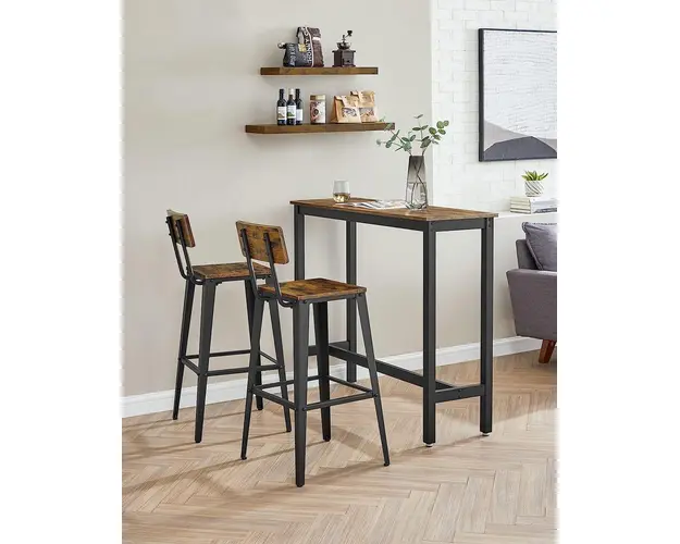 Set 2 scaune de bar, Vasagle, 45.4 x 45.4 x 102.2 cm, PAL/otel, maro/negru