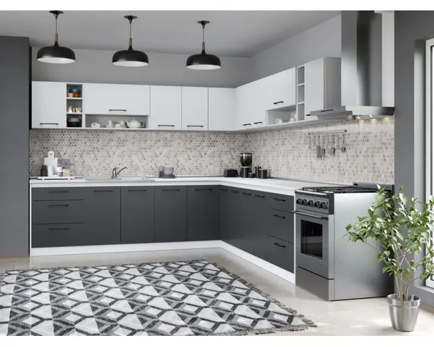 Set Mobila Bucatarie Colt Mina Dual 280*280 Gri Antracit/Alb C118