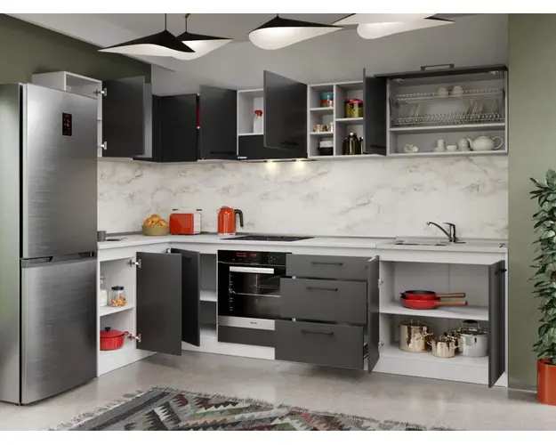 Set Mobila Bucatarie Colt Mina Grafit 140*300 Gri Antracit - C89