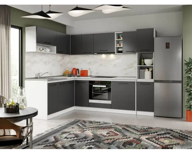 Set Mobila Bucatarie Colt Mina Grafit 180*260 Gri Antracit - C85