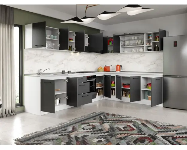 Set Mobila Bucatarie Colt Mina Grafit 300*240 Gri Antracit - C88