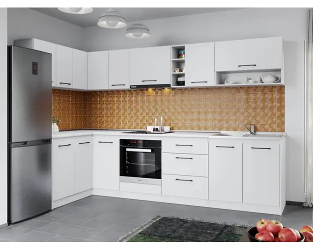 Set Mobila Bucatarie Colt Mina Pure 140*300 Alb C62