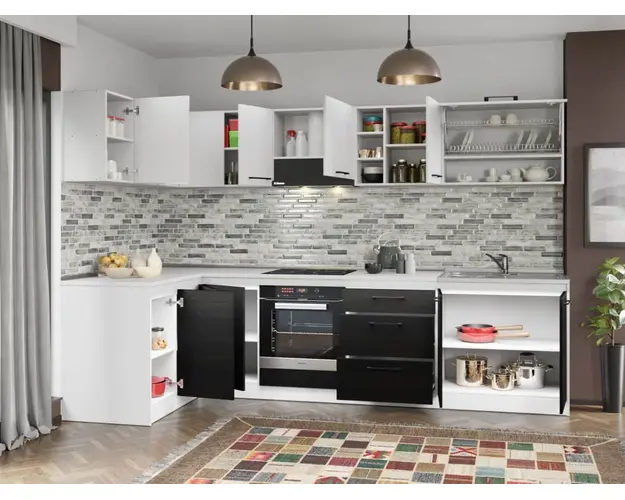 Set Mobila Bucatarie Colt Mina Yang 140*300 Ferrara/Alb C143
