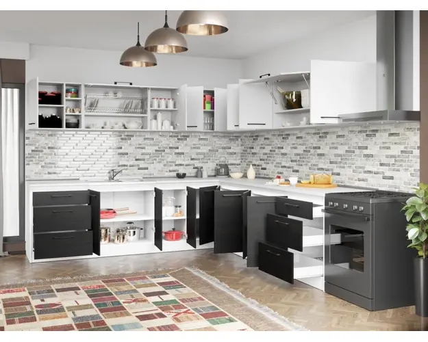 Set Mobila Bucatarie Colt Mina Yang 280*280 Ferrara/Alb C146
