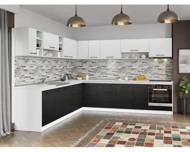 Set Mobila Bucatarie Colt Mina Yang 300*300 Ferrara/Alb C145