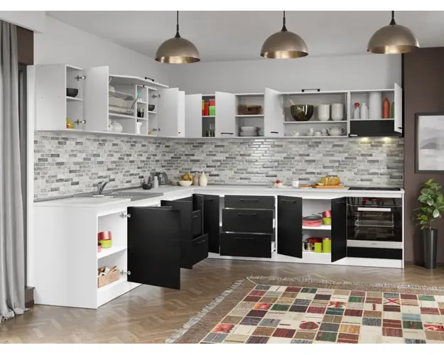 Set Mobila Bucatarie Colt Mina Yang 300*300 Ferrara/Alb C145