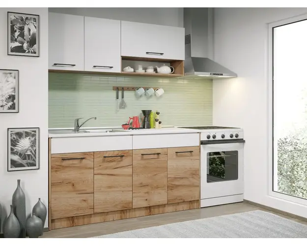 Set Mobila Bucatarie Gastro 160 Alb/Stejar - C07