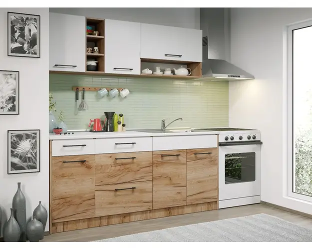 Set Mobila Bucatarie Gastro 180 Alb/Stejar - C05