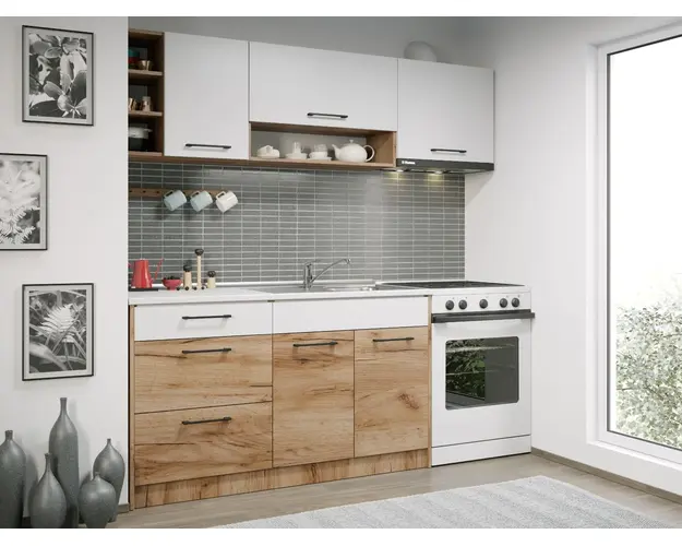 Set Mobila Bucatarie Gastro 200 Alb/Stejar - C08