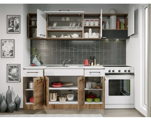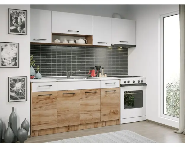 Set Mobila Bucatarie Gastro 220 Alb/Stejar - C20