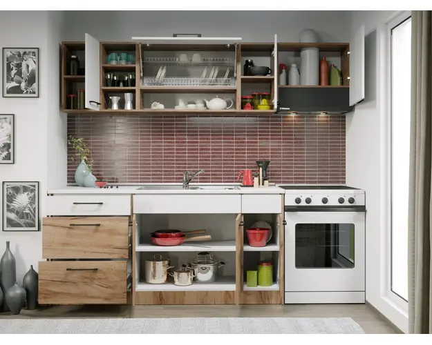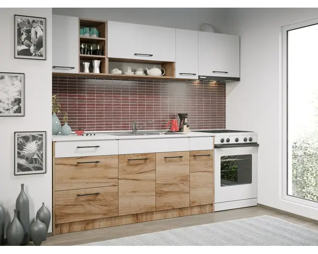 Set Mobila Bucatarie Gastro 230 Alb/Stejar - C13