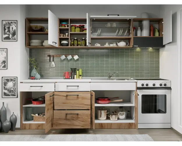 Set Mobila Bucatarie Gastro 260 Alb/Stejar - C03
