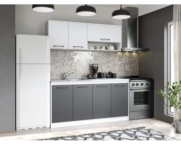 Set Mobila Bucatarie Mina Dual 160 Gri Antracit/Alb C104