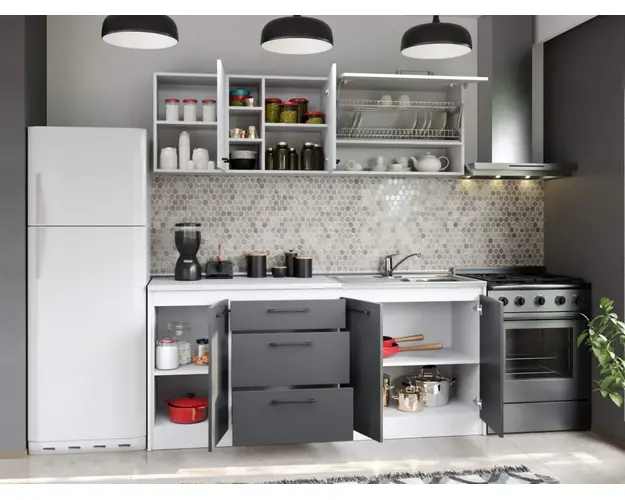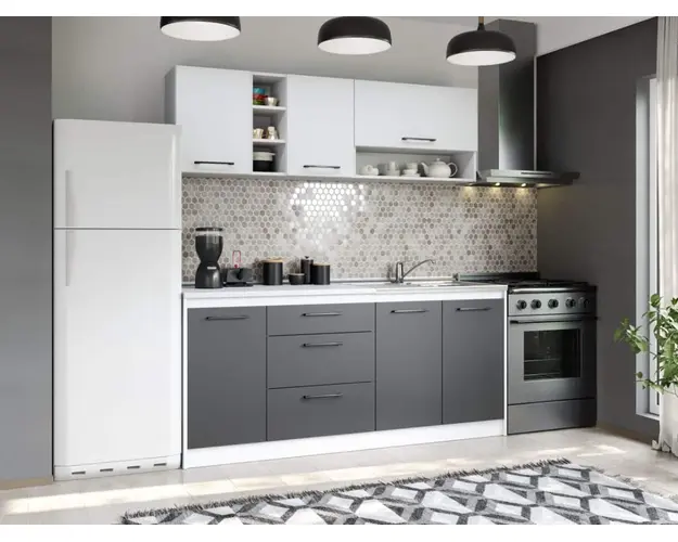 Set Mobila Bucatarie Mina Dual 180 Gri Antracit/Alb C99
