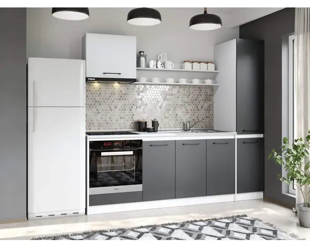 Set Mobila Bucatarie Mina Dual 220 Gri Antracit/Alb C110