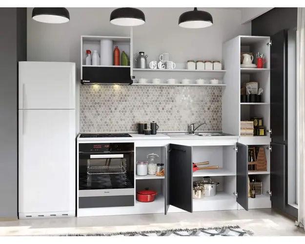 Set Mobila Bucatarie Mina Dual 220 Gri Antracit/Alb C110