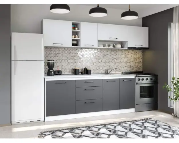 Set Mobila Bucatarie Mina Dual 260 Gri Antracit/Alb C97