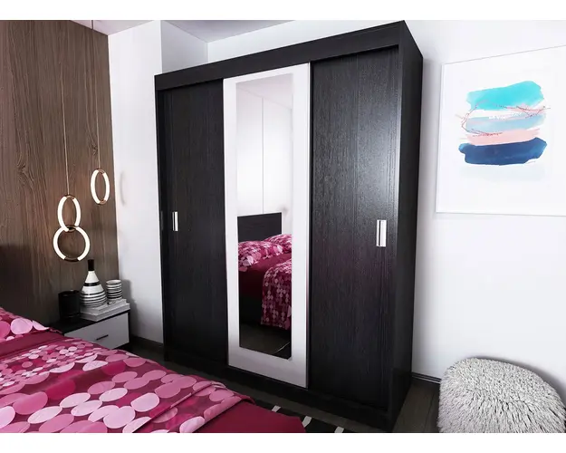 Set Mobila Dormitor Bingo F Netapitat face parte din familia Bingo, acest set de mobila este format din mai multe piese la un pret avantajos. Corpurile sunt construite din PAL melaminat de 16mm cu finisaj Ferrara si Alb Mat, o textura similara lemnului, care creeaza un contrast rafinat si un ambient placut. Dimensiunea patului este la alegere 140×200, 160×200, 180×200 (spatiul pentru saltea) iar spatarul poate fi comandat netapitat, tapitat alb sau wenge .Cantul aplicat este unul de 0,6 care le permite muchiilor sa fie placute la atingere fiind finisate si atent retusate. Corpuri Set Mobila Dormitor Bingo F Netapitat Dulap 3U glisante L 153 x A 55 x H 194.8cm Schita Montaj Compartimentat cu 7 polite si bara de umerase, cu oglinda aplicata pe usa. Pat matrimonial L 146, 166, 186 x A 203.2 x H 92cm Schita Pat 140 / Schita Pat 160 / Schita Pat 180 Suport de saltea inclus. Sustine pana la 300kg. Comoda L 67 x A 40.5 x H 71.7cm Schita Montaj Spatiu depozitare deschis si doua usi. Set noptiere L 44.4 x A 22.3 x H 32.5cm Schita Montaj Cu usa si spatiu generos. Livrare Gratuita prin flota proprie Suntem producatori de mobilier Toate corpurile au o garantie de 2 ani Pat dormitor 140, 160 sau 180 x 200 - Set Mobila Dormitor Bingo F Netapitat Patul matrimonial mentine linia de design al setului de dormitor. Este rezistent cu sustinere in: repere de sustinere multiple 4 linii de sustinere pe latime si 3 pe lungime L-uri metalice pe colturi Latime: 203.2 cm Adancime: 186 cm sau 166 cm sau 146 cm (la alegere) Inaltime capat mare: 92 cm Inaltime capat mic: 34 cm Suport de saltea din pal brut inclus. Salteaua nu este inclusa! Bifati sus ca doriti. Saltea Compatibila 180×200 cm sau 160×200 cm sau 140×200 cm Atentie! Pretul afisat nu include salteaua si alte accesorii sau obiecte de decor (tablouri, elemente de iluminat, asternuturi, covor etc.) Dimensiunile pot oscila intre ± 10 mm. Produsul se livreaza demontat si este insotit de accesorii si instructiuni de asamblare. Produsul cu denumirea Set Mobila Dormitor Bingo F Netapitat face parte din brandul Mobila laguna, se afla in categoria Seturi living si subcategoria
