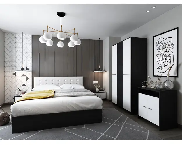 Set Mobila Dormitor Mario 3U tapitat alb face parte din familia Mario, aceast set de mobila este format din mai multe piese la un pret avantajos. Corpurile sunt construite din PAL melaminat de 16mm cu finisaj Ferrara si Alb Mat, o textura similara lemnului, care creeaza un contrast rafinat si un ambient placut. Dimensiunea patului este la alegere 140×200, 160×200, 180×200 (spatiul pentru saltea) iar spatarul poate fi comandat netapitat, tapitat alb sau wenge . Cantul aplicat este unul de 0,6 care le permite muchiilor sa fie placute la atingere fiind finisate si atent retusate. Corpuri Set Mobila Dormitor Mario 3U tapitat alb Dulap 3U L 123 x A 48 x H 192cm Schita Montaj Compartimentat cu 5 polite si bara de umerase. Pat matrimonial Tapitat L 146, 166, 186 x A 203.2 x H 92cm Schita Montaj Suport de saltea inclus. Sustine pana la 300kg. Comoda L 67 x A 40.5 x H 71.7cm Schita Montaj Spatiu depozitare deschis si doua usi. Set noptiere L 44.4 x A 22.3 x H 32.5cm Schita Montaj Cu usa si spatiu generos. Livrare Gratuita prin flota proprie Suntem producatori de mobilier Toate corpurile au o garantie de 2 ani Video de prezentare familie Videoul de prezentare poate contine mai multe corpuri de mobilier sau mai putine in comparatie cu produsul de pe aceasta pagina. Scopul acestui video este de a detalia aspectul materialelor, accesoriilor cat si a familiei din care face parte. Pat Dormitor Mario 3U tapitat alb 3 dimensiuni. Patul matrimonial mentine linia de design al setului de dormitor. Este rezistent cu sustinere in: repere de sustinere multiple 4 linii de sustinere pe latime si 3 pe lungime L-uri metalice pe colturi Latime: 203.2 cm Adancime: 186 cm sau 166 cm sau 146 cm (la alegere) Inaltime capat mare: 92 cm Inaltime capat mic: 34 cm Suport de saltea din pal brut inclus. Salteaua nu este inclusa Saltea Compatibila 180×200 cm sau 160×200 cm sau 140×200 cm Atentie! Pretul afisat nu include salteaua si alte accesorii sau obiecte de decor (tablouri, elemente de iluminat, asternuturi, covor etc.) Dimensiunile pot oscila intre ± 10 mm. Produsul se livreaza demontat si este insotit de accesorii si instructiuni de asamblare. Produsul cu denumirea Set Mobila Dormitor Mario 3U tapitat alb face parte din brandul Mobila laguna, se afla in categoria Seturi living si subcategoria