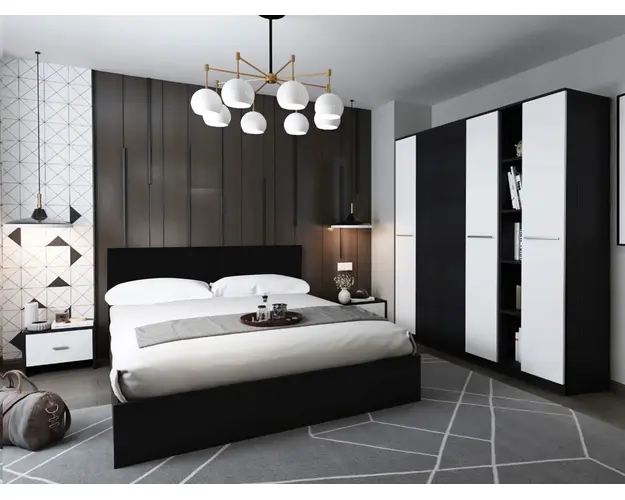 Set Mobila Dormitor Mario 4U 5 piese face parte din familia Mario, aceast set de mobila este format din mai multe piese la un pret avantajos. Corpurile sunt construite din PAL melaminat de 16mm cu finisaj Ferrara si Alb Mat, o textura similara lemnului, care creeaza un contrast rafinat si un ambient placut. Dimensiunea patului este la alegere 140×200, 160×200, 180×200 (spatiul pentru saltea) iar spatarul poate fi comandat netapitat, tapitat alb sau wenge . Cantul aplicat este unul de 0,6 care le permite muchiilor sa fie placute la atingere fiind finisate si atent retusate. Corpuri Set Mobila Dormitor Mario 4U 5 piese Dulap 4U L 164 x A 48 x H 192cm Schita Montaj Compartimentat cu 5 polite si 2 bare de umerase. Dulap 1U + polite L 66.6 x A 48 x H 192cm Schita Montaj Compartimentat cu 5 polite deschise si 5 inchise. Pat matrimonial L 146, 166, 186 x A 203.2 x H 92cm Schita Montaj Suport de saltea inclus. Sustine pana la 300kg. Set noptiere L 44.4 x A 22.3 x H 32.5cm Schita Montaj Cu usa si spatiu generos. Livrare Gratuita prin flota proprie Suntem producatori de mobilier Toate corpurile au o garantie de 2 ani Video de prezentare familie Videoul de prezentare poate contine mai multe corpuri de mobilier sau mai putine in comparatie cu produsul de pe aceasta pagina. Scopul acestui video este de a detalia aspectul materialelor, accesoriilor cat si a familiei din care face parte. v Pat matrimonial Mario cu suport saltea 3 dimensiuni. Patul matrimonial mentine linia de design al setului de dormitor. Este rezistent cu sustinere in: repere de sustinere multiple 4 linii de sustinere pe latime si 3 pe lungime L-uri metalice pe colturi Latime: 203.2 cm Adancime: 186 cm sau 166 cm sau 146 cm (la alegere) Inaltime capat mare: 92 cm Inaltime capat mic: 34 cm Suport de saltea din pal brut inclus. Salteaua nu este inclusa Saltea Compatibila 180×200 cm sau 160×200 cm sau 140×200 cm Atentie! Pretul afisat nu include salteaua si alte accesorii sau obiecte de decor (tablouri, elemente de iluminat, asternuturi, covor etc.) Dimensiunile pot oscila intre ± 10 mm. Produsul se livreaza demontat si este insotit de accesorii si instructiuni de asamblare. Produsul cu denumirea Set Mobila Dormitor Mario 4U 5 piese face parte din brandul Mobila laguna, se afla in categoria Seturi living si subcategoria