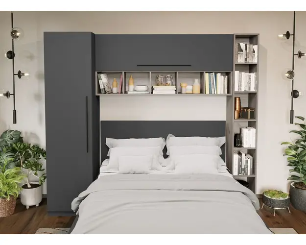 Set Dormitor Noce 2.33m cu pat incadrat Ideal pentru camere mici sau care vor sa economiseasca spatiu. Corpurile din Set Dormitor Noce 2.33m cu pat incadrat sunt spatioase si indeplinesc atat un rol estetic, cat si unul functional desavarsit. Finisajul gri antracit in combinatie cu stejarul k02 si manerele negre creeaza un ambient modern si relaxant. Include pat 140x200, corp suprapozabil suspendat deasupra patului si dulapuri laterale . Dimensiunea peretelui pe care se poate pozitiona este de minim 2.33m . Dormitorul este compus din: Dulap 0.51m - L 51 x A 53 x H 199cm - Schita Montaj Corp Polite 0.28m L 28 x A 33.6 x H 199cm Schita Montaj Corp Suprapozabil - L 154 x A 30.4 x H 69 cm - Schita Montaj Compartimentate cu 6 polite inchise, 11 deschise. Pat matrimonial L 151.4 x A 211 x H 95cm Schita Montaj Suport de saltea inclus. Sustine pana la 300kg. Set 2 sertare fata (optional) - L 103 x A 69.4 x H 28.7cm - Schita Montaj Poti alege 2 lazi pentru depozitare. Livrare Gratuita prin flota proprie Suntem producatori de mobilier Toate corpurile au o garantie de 2 ani Video de prezentare familie Videoul de prezentare poate contine mai multe corpuri de mobilier sau mai putine in comparatie cu produsul de pe aceasta pagina. Scopul acestui video este de a detalia aspectul materialelor, accesoriilor cat si a familiei din care face parte. Set Dormitor Noce 2.33m cu pat incadrat Se pot pune 2 sertare de depozitare in fata pe stanga si dreapta. Este rezistent cu sustinere in mai multe elemente: puncte de sprijin pe doua axe, 2 linii de sustinere pe lungime/laterale + 1 T central, L-uri metalice pe colturi Dimensiuni Pat Gri Latime: 151.4 cm Adancime: 211 cm Inaltime capat mare: 95 cm Inaltime capat mic: 36.8 cm Spatiu incadrament saltea: 7 cm (cat intra salteaua in cadru) Spatiu de la suport saltea la pardoseala: 30.5 cm Suportul de saltea din pal brut este inclus in pret. Saltea Compatibila 140×200 cm. Salteaua nu este inclusa! Bifati sus ca doriti. Alege 2 lazi pentru depozitare Sporeste utilitatea patului prin lazile de depozitare. Reperul de jos este din pal de 16mm ce ofera o rezistenta sporita. Nu necesita fixarea pe cadrul patului, sunt pe roti si culiseaza sub pat iar frontul sertarului se opreste in laterala patului mascand spatiul de sub pat. Pot fi puse 2 sertare. Dimensiune 1 sertar: 28.7 cm x 103 cm x 69.4 cm. Set Dormitor Noce 2.33m cu pat incadrat Face parte din familia de mobila pentru dormitor Noce . Mobileaza un dormitor rapid si usor. Corpurile din Set Dormitor Noce 2.33m cu pat incadrat sunt realizate din PAL melaminat cu finisaj gri antracit si stejar k02 , o textura similara lemnului, care creeaza un contrast rafinat si un ambient placut. Cantul aplicat este unul de 0,6 ce le permite muchiilor sa fie placute la atingere fiind finisate si atent retusate. Pretul afisat nu include alte accesorii sau obiecte de decor (tablouri, elemente de iluminat, asternuturi, covor etc.) Produsul se livreaza demontat si este insotit de accesorii si instructiuni de asamblare. Dimensiunile sunt exprimate in cm si pot oscila intre ± 10 mm. Produsul cu denumirea Set Mobila Dormitor Noce 2.33m cu pat incadrat face parte din brandul Mobila laguna, se afla in categoria Seturi living si subcategoria