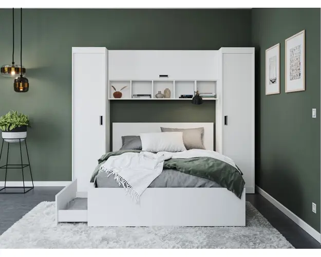 Set Dormitor Nordis 2.42m cu pat incadrat Ideal pentru camere mici sau pentru care se doreste economisirea spatiului. Corpurile din Set Dormitor Nordis 2.42m cu pat incadrat sunt spatioase si indeplinesc atat un rol estetic, cat si unul functional desavarsit. Finisajul alb creeaza un ambient modern si atractiv in combinatie cu manerele negre. Include pat 140x200, corp suprapozabil suspendat deasupra patului si dulapuri laterale . Dimensiunea peretelui pe care se poate pozitiona este de minim 242.8cm . Dormitorul este compus din 2 bucati x Dulap Soldat - L 44.4 x A 55 x H 194.8cm - Schita Montaj cu deschidere clasica pe balamale Corp Suprapozabil - L 154 x A 30.4 x H 69 cm - Schita Montaj Compartimentate cu 12 polite inchise, 5 deschise. Pat matrimonial L 151.4 x A 211 x H 95cm Schita Montaj Suport de saltea inclus. Sustine pana la 300kg. Set 2 sertare fata (optional) - L 103 x A 69.4 x H 28.7cm - Schita Montaj Poti alege 2 lazi pentru depozitare. Livrare Gratuita prin flota proprie Suntem producatori de mobilier Toate corpurile au o garantie de 2 ani Video de prezentare familie Videoul de prezentare poate contine mai multe corpuri de mobilier sau mai putine in comparatie cu produsul de pe aceasta pagina. Scopul acestui video este de a detalia aspectul materialelor, accesoriilor cat si a familiei din care face parte. Dormitor Nordis 2.42m cu pat incadrat Se pot pune 2 sertare de depozitare in fata pe stanga si dreapta. Este rezistent cu sustinere in mai multe elemente: puncte de sprijin pe doua axe, 2 linii de sustinere pe lungime/laterale + 1 T central, L-uri metalice pe colturi Dimensiuni Pat Alb Latime: 151.4 cm Adancime: 211 cm Inaltime capat mare: 95 cm Inaltime capat mic: 36.8 cm Spatiu incadrament saltea: 7 cm (cat intra salteaua in cadru) Spatiu de la suport saltea la pardoseala: 30.5 cm Suportul de saltea din pal brut este inclus in pret. Saltea Compatibila 140×200 cm. Salteaua nu este inclusa! Bifati sus ca doriti. Alege 2 lazi pentru depozitare Sporeste utilitatea patului prin lazile de depozitare. Reperul de jos este din pal de 16mm ce ofera o rezistenta sporita. Nu necesita fixarea pe cadrul patului, sunt pe roti si culiseaza sub pat iar frontul sertarului se opreste in laterala patului mascand spatiul de sub pat. Pot fi puse 2 sertare. Dimensiune 1 sertar: 28.7 cm x 103 cm x 69.4 cm. Set Dormitor pat incadrat Face parte din familia de mobila pentru dormitor Nordis . O solutie ideala pentru un dormitor matrimonial. Corpurile din Set Dormitor Nordis 2.42m cu pat incadrat sunt realizate din PAL melaminat cu finisaj Alb, care creeaza un spatiu rafinat si un ambient placut. Cantul aplicat este unul de 0,6 ce le permite muchiilor sa fie placute la atingere fiind finisate si atent retusate. Pretul afisat nu include alte accesorii sau obiecte de decor (tablouri, elemente de iluminat, asternuturi, covor etc.) Produsul se livreaza demontat si este insotit de accesorii si instructiuni de asamblare. Dimensiunile sunt exprimate in cm si pot oscila intre ± 10 mm. Produsul cu denumirea Set Mobila Dormitor Nordis 2.42m cu pat incadrat face parte din brandul Mobila laguna, se afla in categoria Seturi living si subcategoria