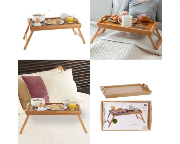 Tava din lemn de bambus este excelenta pentru a servi micul dejun sau pranzul in pat. Aceasta poate fi de asemenea folosita ca tava normala. Lemnul de bambus este natural, ecologic, rezistent si fara alergeni. Dati decorului bucatariei dumneavoastra o nota unica, cu ajutorul acestei tavi elegante din bambus! Produsul cu denumirea Tava pliabila pentru servire Bamboo 50x30 cm face parte din brandul Excellent houseware, se afla in categoria Automatizari si subcategoria